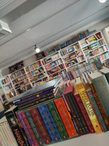 We offer used books, antiques, and other interesting finds.